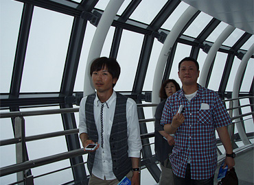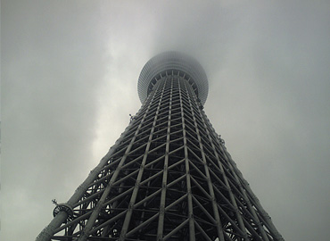 当日はあいにくの雨模様で展望フロアーからの眺めは、白一色、雲でした。しかし、地上より見上げたスカイツリーには感動しました。