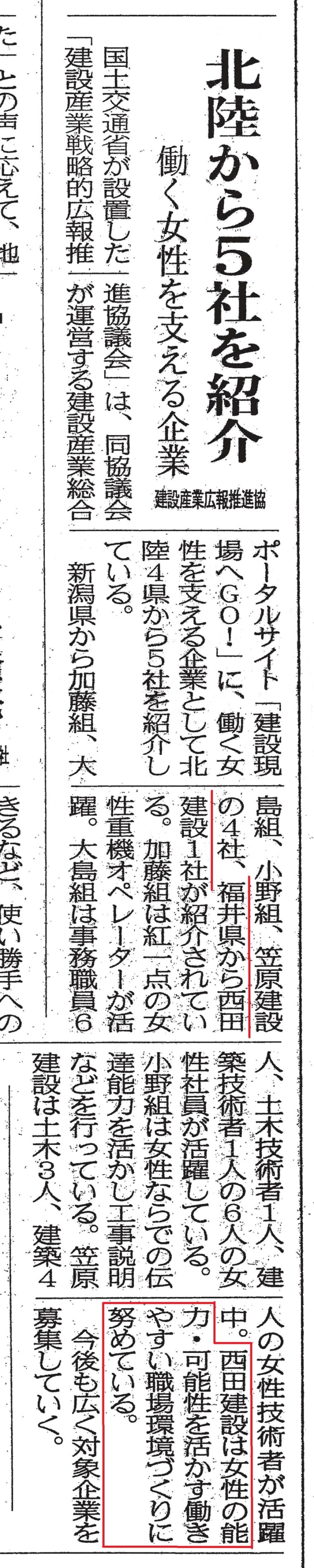 NEWS お知らせ TOP メディア掲載 働く女性を支える企業として紹介されました 働く女性を支える企業として紹介されました 2015.04.25 国土交通省が設置した「建設産業戦略的広報推進協議会」が 運営するポータルサイト【建設現場へGO!】にて、 働く女性を支える企業として弊社が紹介されました。 詳しくはこちら また、上記を紹介する記事が掲載されました。記事はこちら 戻る 一覧へ 次へ 新着情報 永平寺大燈籠流しの清掃に参加しました。 丸岡宿泊型自立訓練事業所新築工事を受注しました。 小松(7)宿舎改修建築その1 を受注しました。 福井警察署 森田交番新築工事を受注しました。 公益財団法人 全国法人会総連合様から表彰されました カテゴリ インターンシップ 採用情報 現場見学会 メディア掲載 講演活動 令和7年度 令和6年度 令和5年度 令和4年度 令和3年度 令和2年度 令和元年度 平成30年度 平成29年度 平成28年度 平成27年度 平成26年度 平成25年度 平成24年度 平成23年度 アーカイブ 2025 (10) 2024 (30) 2023 (24) 2022 (21) 2021 (24) 2020 (30) 2019 (58) 2018 (57) 2017 (39) 2016 (34) 2015 (22) 2014 (14) 2013 (14) 2012 (11) 2011 (7) 新着情報 永平寺大燈籠流しの清掃に参加しました。 丸岡宿泊型自立訓練事業所新築工事を受注しました。 小松(7)宿舎改修建築その1 を受注しました。 福井警察署 森田交番新築工事を受注しました。 公益財団法人 全国法人会総連合様から表彰されました カテゴリ インターンシップ 採用情報 現場見学会 メディア掲載 講演活動 令和7年度 令和6年度 令和5年度 令和4年度 令和3年度 令和2年度 令和元年度 平成30年度 平成29年度 平成28年度 平成27年度 平成26年度 平成25年度 平成24年度 平成23年度 アーカイブ 2025 (10) 2024 (30) 2023 (24) 2022 (21) 2021 (24) 2020 (30) 2019 (58) 2018 (57) 2017 (39) 2016 (34) 2015 (22) 2014 (14) 2013 (14) 2012 (11) 2011 (7)