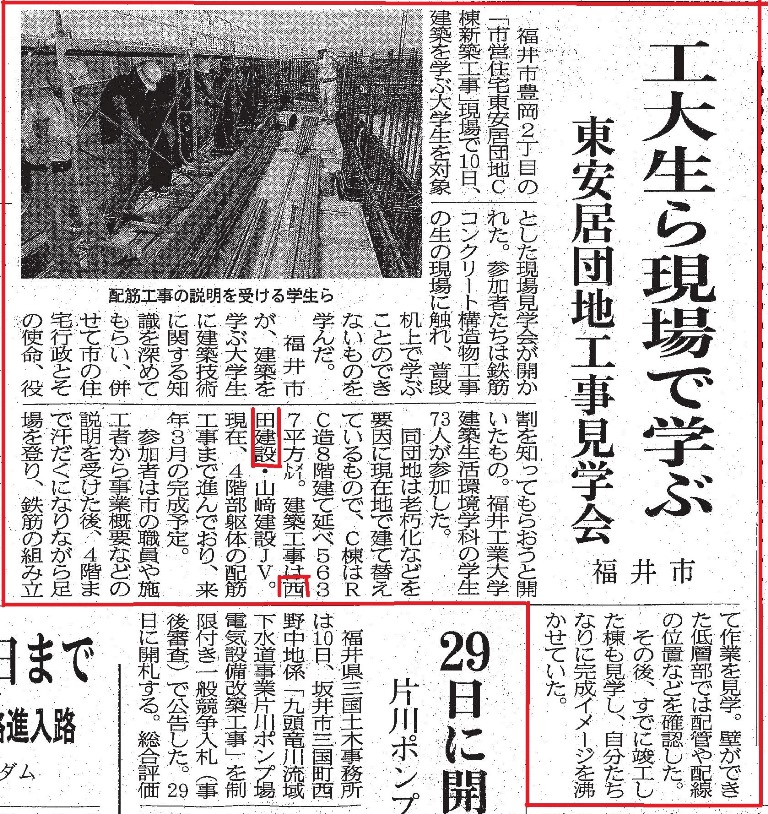 NEWS お知らせ TOP 現場見学会 現場見学会*東安居団地C棟新築工事 現場見学会*東安居団地C棟新築工事 2015.07.10 「東安居団地C棟新築工事」現場見学会を開催しました。 福井工業大学の学生さん達に工事状況を見学していただきました。 詳細はこちら 建設工業新聞より 見学会の様子 戻る 一覧へ 次へ 新着情報 永平寺大燈籠流しの清掃に参加しました。 丸岡宿泊型自立訓練事業所新築工事を受注しました。 小松(7)宿舎改修建築その1 を受注しました。 福井警察署 森田交番新築工事を受注しました。 公益財団法人 全国法人会総連合様から表彰されました カテゴリ インターンシップ 採用情報 現場見学会 メディア掲載 講演活動 令和7年度 令和6年度 令和5年度 令和4年度 令和3年度 令和2年度 令和元年度 平成30年度 平成29年度 平成28年度 平成27年度 平成26年度 平成25年度 平成24年度 平成23年度 アーカイブ 2025 (10) 2024 (30) 2023 (24) 2022 (21) 2021 (24) 2020 (30) 2019 (58) 2018 (57) 2017 (39) 2016 (34) 2015 (22) 2014 (14) 2013 (14) 2012 (11) 2011 (7) 新着情報 永平寺大燈籠流しの清掃に参加しました。 丸岡宿泊型自立訓練事業所新築工事を受注しました。 小松(7)宿舎改修建築その1 を受注しました。 福井警察署 森田交番新築工事を受注しました。 公益財団法人 全国法人会総連合様から表彰されました カテゴリ インターンシップ 採用情報 現場見学会 メディア掲載 講演活動 令和7年度 令和6年度 令和5年度 令和4年度 令和3年度 令和2年度 令和元年度 平成30年度 平成29年度 平成28年度 平成27年度 平成26年度 平成25年度 平成24年度 平成23年度 アーカイブ 2025 (10) 2024 (30) 2023 (24) 2022 (21) 2021 (24) 2020 (30) 2019 (58) 2018 (57) 2017 (39) 2016 (34) 2015 (22) 2014 (14) 2013 (14) 2012 (11) 2011 (7)