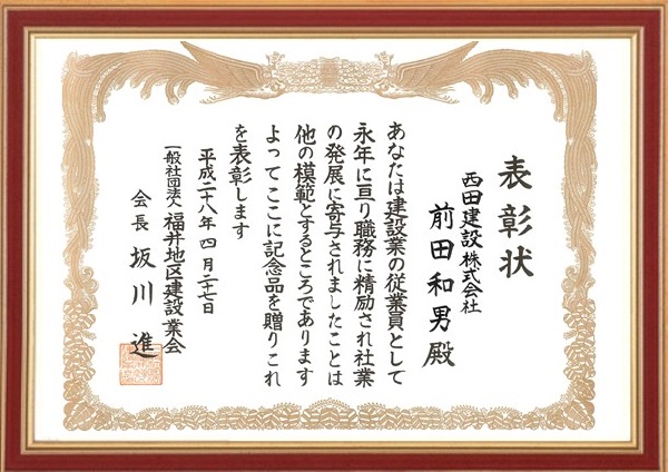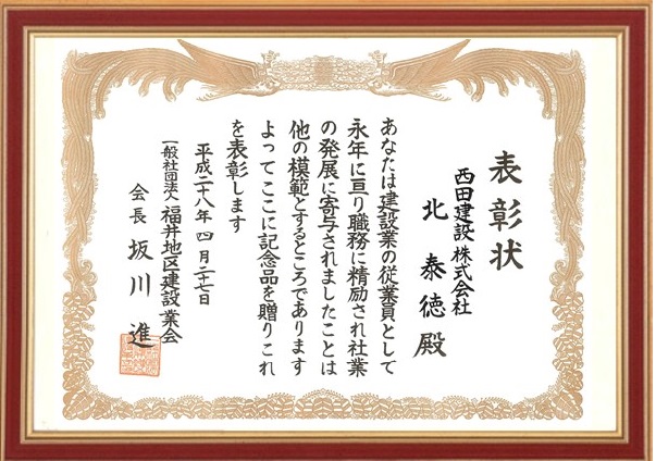 NEWS お知らせ TOP 平成28年度 福井地区建設業会より、永年勤続表彰を受けました。 福井地区建設業会より、永年勤続表彰を受けました。 2016.04.27 弊社の社員2名が福井地区建設業会より、永年勤続表彰を受けました。 建設業会会館にて表彰式があり、参加させていただきました。 おめでとうございます! 戻る 一覧へ 次へ 新着情報 永平寺大燈籠流しの清掃に参加しました。 丸岡宿泊型自立訓練事業所新築工事を受注しました。 小松(7)宿舎改修建築その1 を受注しました。 福井警察署 森田交番新築工事を受注しました。 公益財団法人 全国法人会総連合様から表彰されました カテゴリ インターンシップ 採用情報 現場見学会 メディア掲載 講演活動 令和7年度 令和6年度 令和5年度 令和4年度 令和3年度 令和2年度 令和元年度 平成30年度 平成29年度 平成28年度 平成27年度 平成26年度 平成25年度 平成24年度 平成23年度 アーカイブ 2025 (10) 2024 (30) 2023 (24) 2022 (21) 2021 (24) 2020 (30) 2019 (58) 2018 (57) 2017 (39) 2016 (34) 2015 (22) 2014 (14) 2013 (14) 2012 (11) 2011 (7) 新着情報 永平寺大燈籠流しの清掃に参加しました。 丸岡宿泊型自立訓練事業所新築工事を受注しました。 小松(7)宿舎改修建築その1 を受注しました。 福井警察署 森田交番新築工事を受注しました。 公益財団法人 全国法人会総連合様から表彰されました カテゴリ インターンシップ 採用情報 現場見学会 メディア掲載 講演活動 令和7年度 令和6年度 令和5年度 令和4年度 令和3年度 令和2年度 令和元年度 平成30年度 平成29年度 平成28年度 平成27年度 平成26年度 平成25年度 平成24年度 平成23年度 アーカイブ 2025 (10) 2024 (30) 2023 (24) 2022 (21) 2021 (24) 2020 (30) 2019 (58) 2018 (57) 2017 (39) 2016 (34) 2015 (22) 2014 (14) 2013 (14) 2012 (11) 2011 (7)
