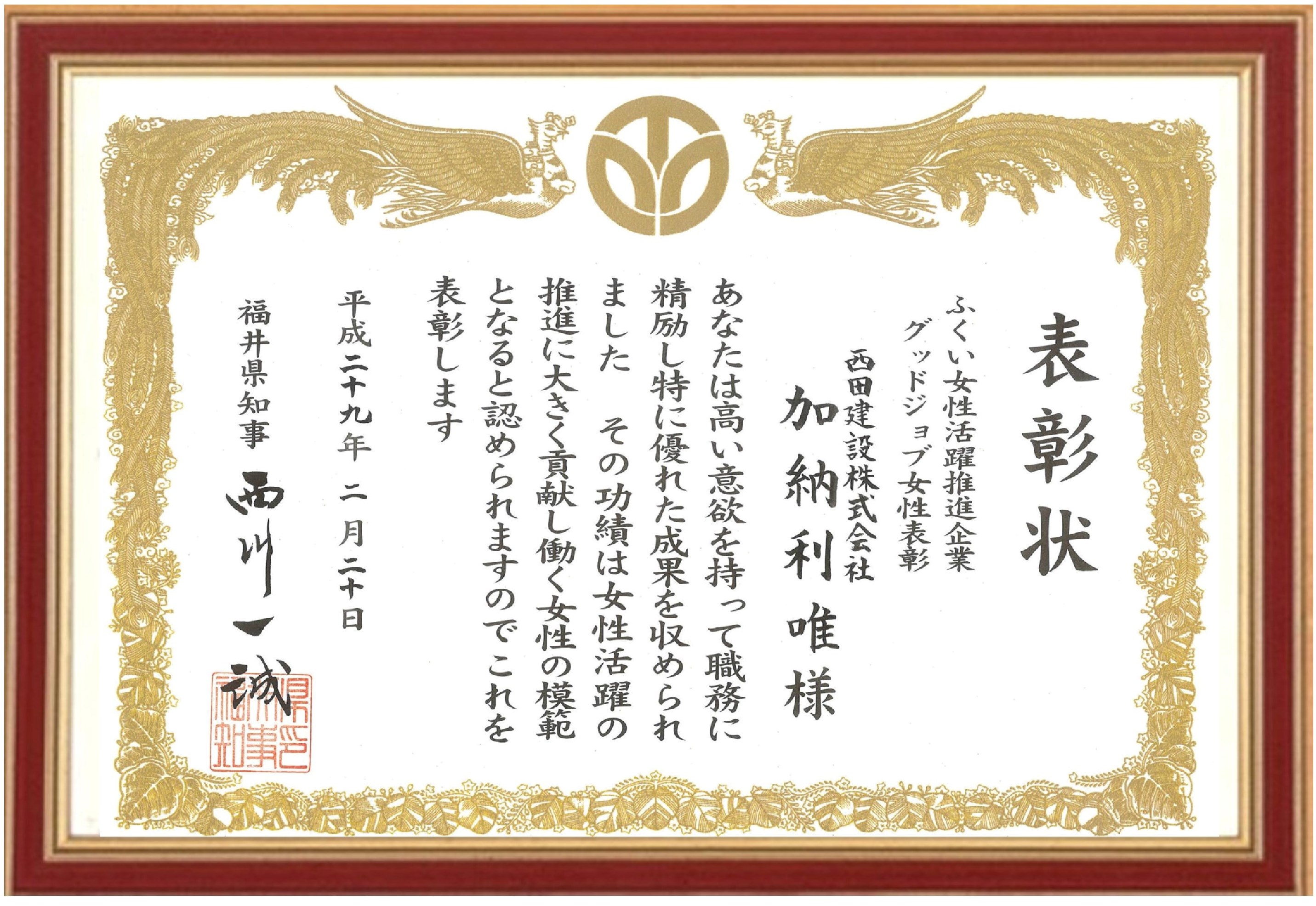 NEWS お知らせ TOP メディア掲載 福井県より、グッドジョブ女性表彰を受けました。 福井県より、グッドジョブ女性表彰を受けました。 2017.02.27 弊社の社員が福井県より、グッドジョブ女性表彰を受けました。 国際交流会館にて表彰式があり、参加させていただきました。 戻る 一覧へ 次へ 新着情報 永平寺大燈籠流しの清掃に参加しました。 丸岡宿泊型自立訓練事業所新築工事を受注しました。 小松(7)宿舎改修建築その1 を受注しました。 福井警察署 森田交番新築工事を受注しました。 公益財団法人 全国法人会総連合様から表彰されました カテゴリ インターンシップ 採用情報 現場見学会 メディア掲載 講演活動 令和7年度 令和6年度 令和5年度 令和4年度 令和3年度 令和2年度 令和元年度 平成30年度 平成29年度 平成28年度 平成27年度 平成26年度 平成25年度 平成24年度 平成23年度 アーカイブ 2025 (10) 2024 (30) 2023 (24) 2022 (21) 2021 (24) 2020 (30) 2019 (58) 2018 (57) 2017 (39) 2016 (34) 2015 (22) 2014 (14) 2013 (14) 2012 (11) 2011 (7) 新着情報 永平寺大燈籠流しの清掃に参加しました。 丸岡宿泊型自立訓練事業所新築工事を受注しました。 小松(7)宿舎改修建築その1 を受注しました。 福井警察署 森田交番新築工事を受注しました。 公益財団法人 全国法人会総連合様から表彰されました カテゴリ インターンシップ 採用情報 現場見学会 メディア掲載 講演活動 令和7年度 令和6年度 令和5年度 令和4年度 令和3年度 令和2年度 令和元年度 平成30年度 平成29年度 平成28年度 平成27年度 平成26年度 平成25年度 平成24年度 平成23年度 アーカイブ 2025 (10) 2024 (30) 2023 (24) 2022 (21) 2021 (24) 2020 (30) 2019 (58) 2018 (57) 2017 (39) 2016 (34) 2015 (22) 2014 (14) 2013 (14) 2012 (11) 2011 (7)