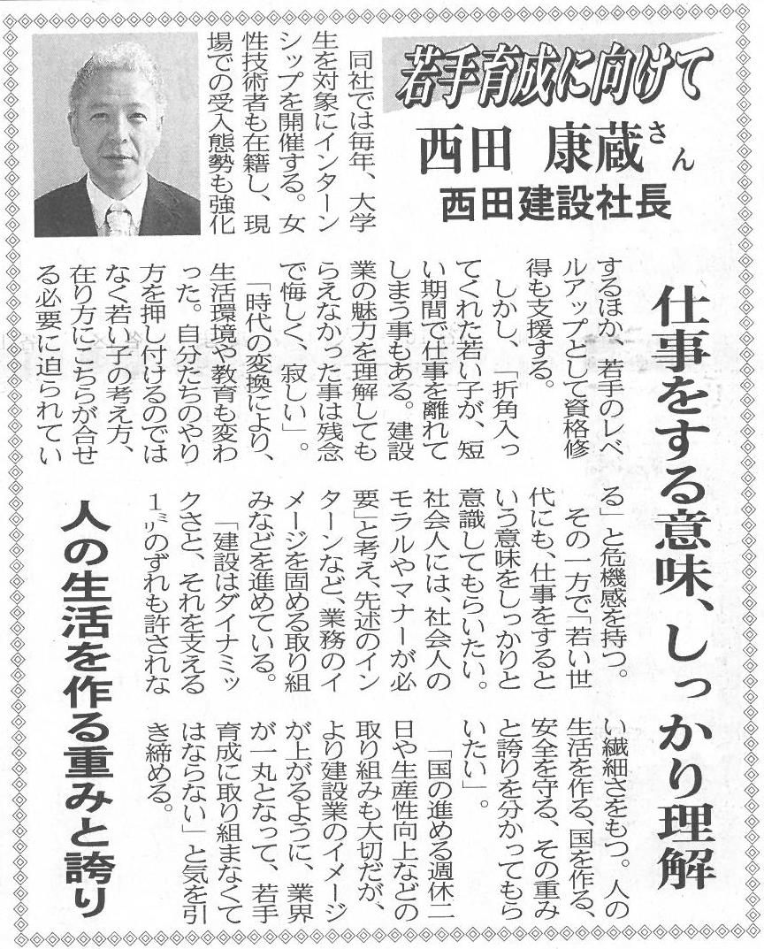 NEWS お知らせ TOP メディア掲載 9月19日 建設工業新聞に掲載されました 9月19日 建設工業新聞に掲載されました 2017.09.19 9月19日の建設工業新聞に弊社社長の記事が 掲載されました。 戻る 一覧へ 次へ 新着情報 永平寺大燈籠流しの清掃に参加しました。 丸岡宿泊型自立訓練事業所新築工事を受注しました。 小松(7)宿舎改修建築その1 を受注しました。 福井警察署 森田交番新築工事を受注しました。 公益財団法人 全国法人会総連合様から表彰されました カテゴリ インターンシップ 採用情報 現場見学会 メディア掲載 講演活動 令和7年度 令和6年度 令和5年度 令和4年度 令和3年度 令和2年度 令和元年度 平成30年度 平成29年度 平成28年度 平成27年度 平成26年度 平成25年度 平成24年度 平成23年度 アーカイブ 2025 (10) 2024 (30) 2023 (24) 2022 (21) 2021 (24) 2020 (30) 2019 (58) 2018 (57) 2017 (39) 2016 (34) 2015 (22) 2014 (14) 2013 (14) 2012 (11) 2011 (7) 新着情報 永平寺大燈籠流しの清掃に参加しました。 丸岡宿泊型自立訓練事業所新築工事を受注しました。 小松(7)宿舎改修建築その1 を受注しました。 福井警察署 森田交番新築工事を受注しました。 公益財団法人 全国法人会総連合様から表彰されました カテゴリ インターンシップ 採用情報 現場見学会 メディア掲載 講演活動 令和7年度 令和6年度 令和5年度 令和4年度 令和3年度 令和2年度 令和元年度 平成30年度 平成29年度 平成28年度 平成27年度 平成26年度 平成25年度 平成24年度 平成23年度 アーカイブ 2025 (10) 2024 (30) 2023 (24) 2022 (21) 2021 (24) 2020 (30) 2019 (58) 2018 (57) 2017 (39) 2016 (34) 2015 (22) 2014 (14) 2013 (14) 2012 (11) 2011 (7)