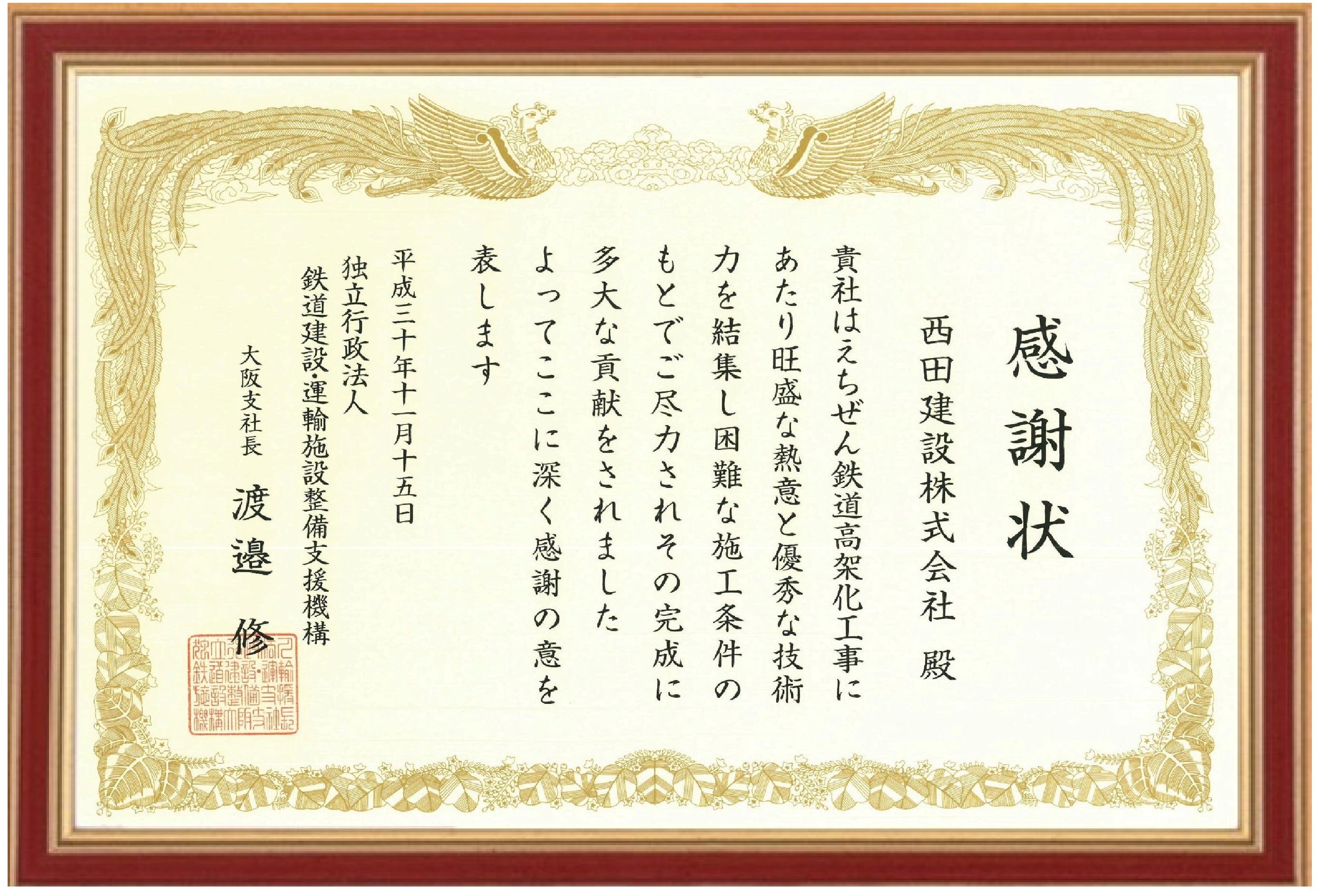NEWS お知らせ TOP 平成30年度 (独)鉄道建設・運輸施設整備支援機構より感謝状をいただきました。 (独)鉄道建設・運輸施設整備支援機構より感謝状をいただきました。 2018.11.15 独立行政法人 鉄道建設・運輸施設整備支援機構 様より えちぜん鉄道高架化工事について、 感謝状をいただきました。 戻る 一覧へ 次へ 新着情報 永平寺大燈籠流しの清掃に参加しました。 丸岡宿泊型自立訓練事業所新築工事を受注しました。 小松(7)宿舎改修建築その1 を受注しました。 福井警察署 森田交番新築工事を受注しました。 公益財団法人 全国法人会総連合様から表彰されました カテゴリ インターンシップ 採用情報 現場見学会 メディア掲載 講演活動 令和7年度 令和6年度 令和5年度 令和4年度 令和3年度 令和2年度 令和元年度 平成30年度 平成29年度 平成28年度 平成27年度 平成26年度 平成25年度 平成24年度 平成23年度 アーカイブ 2025 (10) 2024 (30) 2023 (24) 2022 (21) 2021 (24) 2020 (30) 2019 (58) 2018 (57) 2017 (39) 2016 (34) 2015 (22) 2014 (14) 2013 (14) 2012 (11) 2011 (7) 新着情報 永平寺大燈籠流しの清掃に参加しました。 丸岡宿泊型自立訓練事業所新築工事を受注しました。 小松(7)宿舎改修建築その1 を受注しました。 福井警察署 森田交番新築工事を受注しました。 公益財団法人 全国法人会総連合様から表彰されました カテゴリ インターンシップ 採用情報 現場見学会 メディア掲載 講演活動 令和7年度 令和6年度 令和5年度 令和4年度 令和3年度 令和2年度 令和元年度 平成30年度 平成29年度 平成28年度 平成27年度 平成26年度 平成25年度 平成24年度 平成23年度 アーカイブ 2025 (10) 2024 (30) 2023 (24) 2022 (21) 2021 (24) 2020 (30) 2019 (58) 2018 (57) 2017 (39) 2016 (34) 2015 (22) 2014 (14) 2013 (14) 2012 (11) 2011 (7)