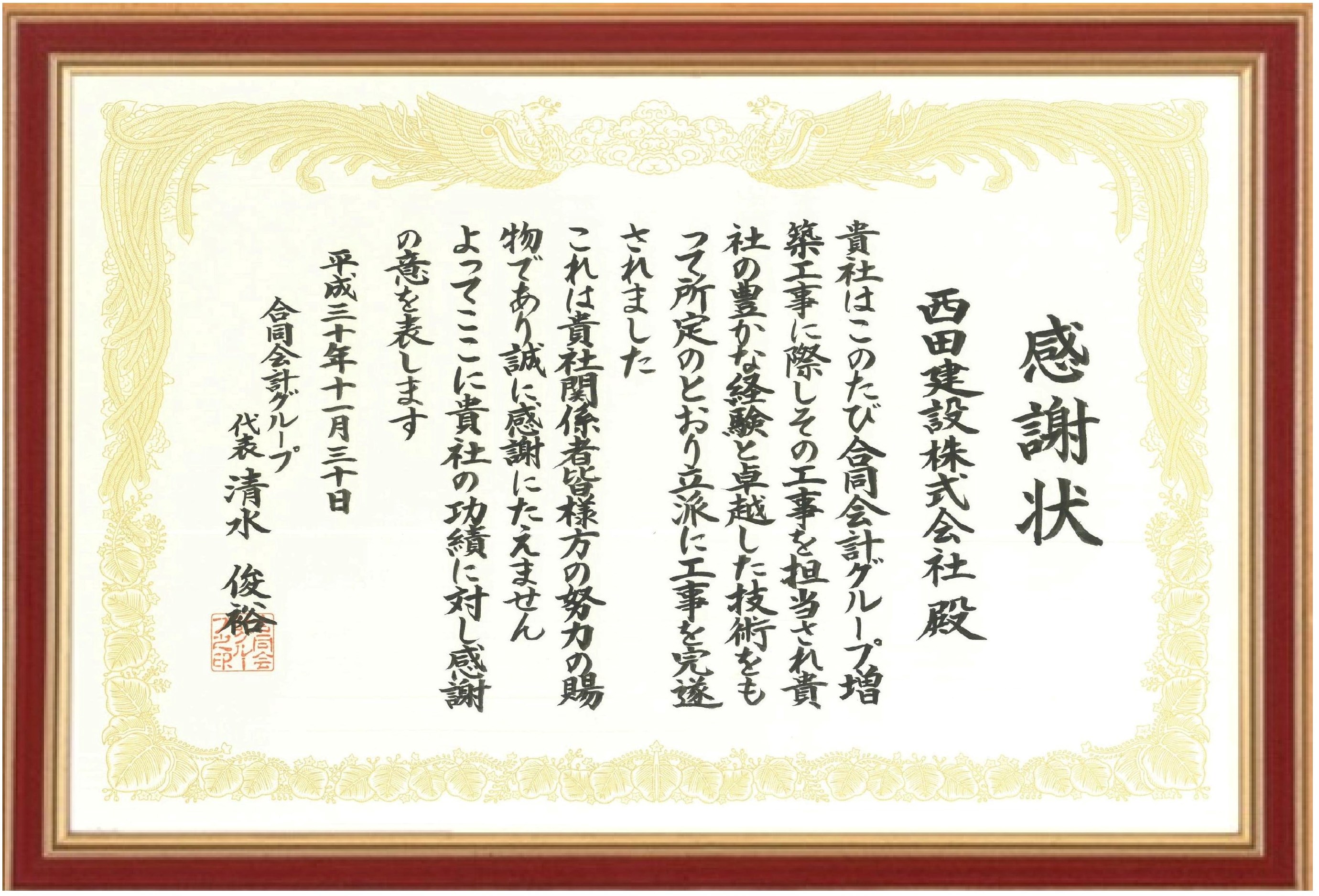 NEWS お知らせ TOP 平成30年度 合同会計グループ様より感謝状 合同会計グループ様より感謝状 2018.11.30 合同会計グループ様より感謝状をいただきました。 戻る 一覧へ 次へ 新着情報 永平寺大燈籠流しの清掃に参加しました。 丸岡宿泊型自立訓練事業所新築工事を受注しました。 小松(7)宿舎改修建築その1 を受注しました。 福井警察署 森田交番新築工事を受注しました。 公益財団法人 全国法人会総連合様から表彰されました カテゴリ インターンシップ 採用情報 現場見学会 メディア掲載 講演活動 令和7年度 令和6年度 令和5年度 令和4年度 令和3年度 令和2年度 令和元年度 平成30年度 平成29年度 平成28年度 平成27年度 平成26年度 平成25年度 平成24年度 平成23年度 アーカイブ 2025 (10) 2024 (30) 2023 (24) 2022 (21) 2021 (24) 2020 (30) 2019 (58) 2018 (57) 2017 (39) 2016 (34) 2015 (22) 2014 (14) 2013 (14) 2012 (11) 2011 (7) 新着情報 永平寺大燈籠流しの清掃に参加しました。 丸岡宿泊型自立訓練事業所新築工事を受注しました。 小松(7)宿舎改修建築その1 を受注しました。 福井警察署 森田交番新築工事を受注しました。 公益財団法人 全国法人会総連合様から表彰されました カテゴリ インターンシップ 採用情報 現場見学会 メディア掲載 講演活動 令和7年度 令和6年度 令和5年度 令和4年度 令和3年度 令和2年度 令和元年度 平成30年度 平成29年度 平成28年度 平成27年度 平成26年度 平成25年度 平成24年度 平成23年度 アーカイブ 2025 (10) 2024 (30) 2023 (24) 2022 (21) 2021 (24) 2020 (30) 2019 (58) 2018 (57) 2017 (39) 2016 (34) 2015 (22) 2014 (14) 2013 (14) 2012 (11) 2011 (7)