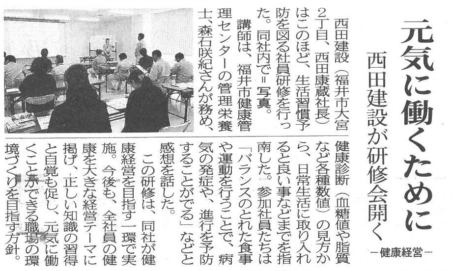 NEWS お知らせ TOP メディア掲載 生活習慣予防研修会を開催しました。 生活習慣予防研修会を開催しました。 2019.11.05 健康経営の取組として、全社員を対象に 生活習慣予防研修会を行いました。 健康診断の結果の見方や、 日常生活に取り入れると良い事などを学びました。 バランスのとれた食事や運動を行うことで、 病気の発症や進行を予防することがでるそうです。 社員の健康づくりを重視し、社員一人ひとりが 健康に関する正しい知識を身につけて、 健康で元気に働ける企業を目指しています。 建設工業新聞 戻る 一覧へ 次へ 新着情報 永平寺大燈籠流しの清掃に参加しました。 丸岡宿泊型自立訓練事業所新築工事を受注しました。 小松(7)宿舎改修建築その1 を受注しました。 福井警察署 森田交番新築工事を受注しました。 公益財団法人 全国法人会総連合様から表彰されました カテゴリ インターンシップ 採用情報 現場見学会 メディア掲載 講演活動 令和7年度 令和6年度 令和5年度 令和4年度 令和3年度 令和2年度 令和元年度 平成30年度 平成29年度 平成28年度 平成27年度 平成26年度 平成25年度 平成24年度 平成23年度 アーカイブ 2025 (10) 2024 (30) 2023 (24) 2022 (21) 2021 (24) 2020 (30) 2019 (58) 2018 (57) 2017 (39) 2016 (34) 2015 (22) 2014 (14) 2013 (14) 2012 (11) 2011 (7) 新着情報 永平寺大燈籠流しの清掃に参加しました。 丸岡宿泊型自立訓練事業所新築工事を受注しました。 小松(7)宿舎改修建築その1 を受注しました。 福井警察署 森田交番新築工事を受注しました。 公益財団法人 全国法人会総連合様から表彰されました カテゴリ インターンシップ 採用情報 現場見学会 メディア掲載 講演活動 令和7年度 令和6年度 令和5年度 令和4年度 令和3年度 令和2年度 令和元年度 平成30年度 平成29年度 平成28年度 平成27年度 平成26年度 平成25年度 平成24年度 平成23年度 アーカイブ 2025 (10) 2024 (30) 2023 (24) 2022 (21) 2021 (24) 2020 (30) 2019 (58) 2018 (57) 2017 (39) 2016 (34) 2015 (22) 2014 (14) 2013 (14) 2012 (11) 2011 (7)