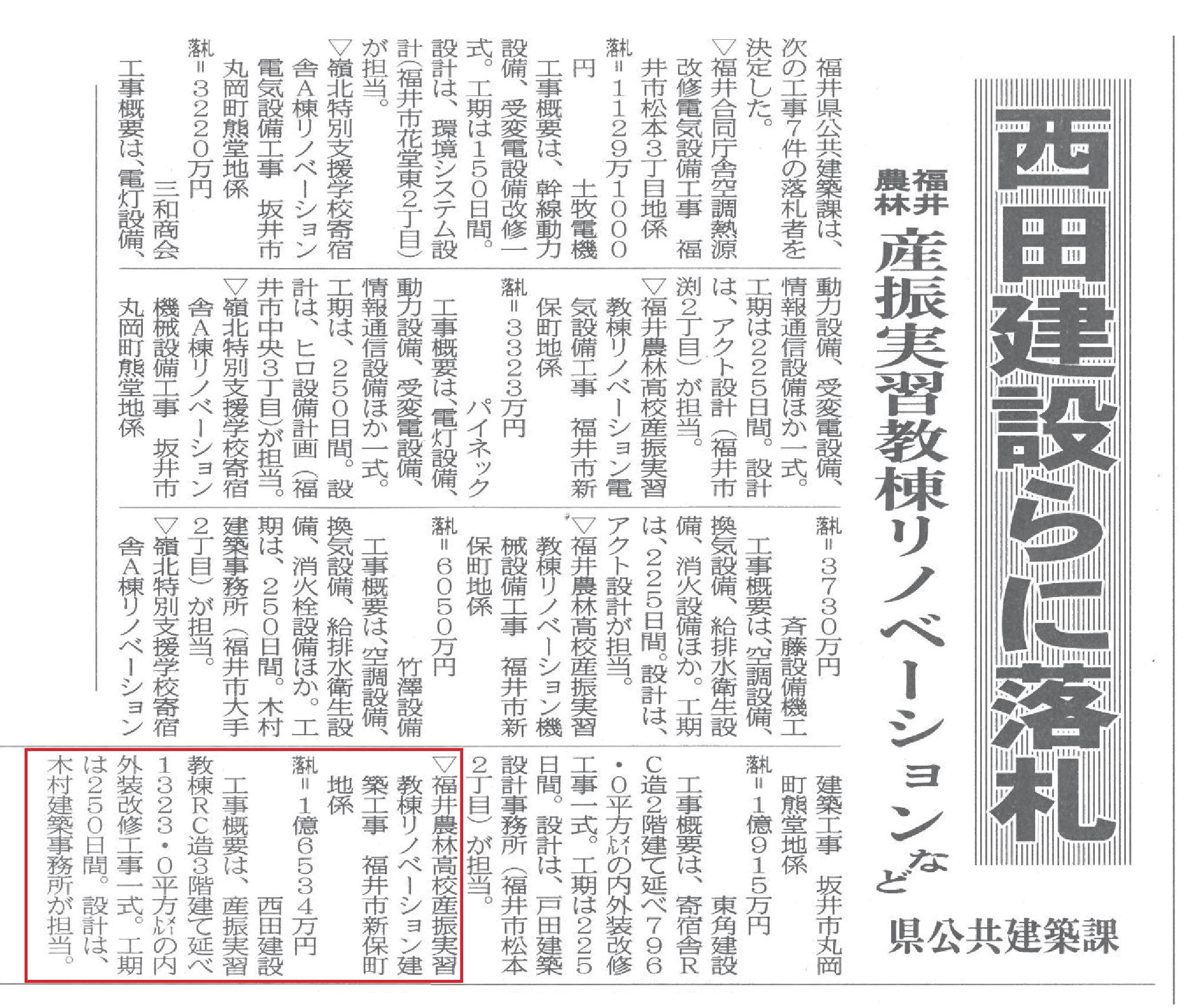 NEWS お知らせ TOP メディア掲載 福井農林高校産振実習教棟リノベーション工事を受注しました。 福井農林高校産振実習教棟リノベーション工事を受注しました。 2020.07.14 建設工業新聞 戻る 一覧へ 次へ 新着情報 永平寺大燈籠流しの清掃に参加しました。 丸岡宿泊型自立訓練事業所新築工事を受注しました。 小松(7)宿舎改修建築その1 を受注しました。 福井警察署 森田交番新築工事を受注しました。 公益財団法人 全国法人会総連合様から表彰されました カテゴリ インターンシップ 採用情報 現場見学会 メディア掲載 講演活動 令和7年度 令和6年度 令和5年度 令和4年度 令和3年度 令和2年度 令和元年度 平成30年度 平成29年度 平成28年度 平成27年度 平成26年度 平成25年度 平成24年度 平成23年度 アーカイブ 2025 (10) 2024 (30) 2023 (24) 2022 (21) 2021 (24) 2020 (30) 2019 (58) 2018 (57) 2017 (39) 2016 (34) 2015 (22) 2014 (14) 2013 (14) 2012 (11) 2011 (7) 新着情報 永平寺大燈籠流しの清掃に参加しました。 丸岡宿泊型自立訓練事業所新築工事を受注しました。 小松(7)宿舎改修建築その1 を受注しました。 福井警察署 森田交番新築工事を受注しました。 公益財団法人 全国法人会総連合様から表彰されました カテゴリ インターンシップ 採用情報 現場見学会 メディア掲載 講演活動 令和7年度 令和6年度 令和5年度 令和4年度 令和3年度 令和2年度 令和元年度 平成30年度 平成29年度 平成28年度 平成27年度 平成26年度 平成25年度 平成24年度 平成23年度 アーカイブ 2025 (10) 2024 (30) 2023 (24) 2022 (21) 2021 (24) 2020 (30) 2019 (58) 2018 (57) 2017 (39) 2016 (34) 2015 (22) 2014 (14) 2013 (14) 2012 (11) 2011 (7)