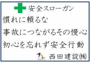 NEWS お知らせ TOP 令和3年度 安全スローガンが決まりました。 安全スローガンが決まりました。 2021.12.08 「慣れに頼るな 事故につながるその慢心 初心を忘れず安全行動」 社内応募により、 来年度の安全スローガンが決まりました(^^)/ 選ばれた社員には、賞品を🍖 おめでとうございます🎊 戻る 一覧へ 次へ 新着情報 永平寺大燈籠流しの清掃に参加しました。 丸岡宿泊型自立訓練事業所新築工事を受注しました。 小松(7)宿舎改修建築その1 を受注しました。 福井警察署 森田交番新築工事を受注しました。 公益財団法人 全国法人会総連合様から表彰されました カテゴリ インターンシップ 採用情報 現場見学会 メディア掲載 講演活動 令和7年度 令和6年度 令和5年度 令和4年度 令和3年度 令和2年度 令和元年度 平成30年度 平成29年度 平成28年度 平成27年度 平成26年度 平成25年度 平成24年度 平成23年度 アーカイブ 2025 (10) 2024 (30) 2023 (24) 2022 (21) 2021 (24) 2020 (30) 2019 (58) 2018 (57) 2017 (39) 2016 (34) 2015 (22) 2014 (14) 2013 (14) 2012 (11) 2011 (7) 新着情報 永平寺大燈籠流しの清掃に参加しました。 丸岡宿泊型自立訓練事業所新築工事を受注しました。 小松(7)宿舎改修建築その1 を受注しました。 福井警察署 森田交番新築工事を受注しました。 公益財団法人 全国法人会総連合様から表彰されました カテゴリ インターンシップ 採用情報 現場見学会 メディア掲載 講演活動 令和7年度 令和6年度 令和5年度 令和4年度 令和3年度 令和2年度 令和元年度 平成30年度 平成29年度 平成28年度 平成27年度 平成26年度 平成25年度 平成24年度 平成23年度 アーカイブ 2025 (10) 2024 (30) 2023 (24) 2022 (21) 2021 (24) 2020 (30) 2019 (58) 2018 (57) 2017 (39) 2016 (34) 2015 (22) 2014 (14) 2013 (14) 2012 (11) 2011 (7)