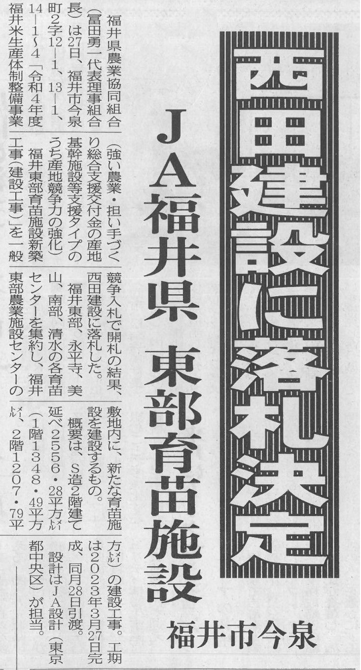 NEWS お知らせ TOP メディア掲載 福井東部育苗施設新築工事 地鎮祭 福井東部育苗施設新築工事 地鎮祭 2022.11.01 福井東部育苗施設新築工事の地鎮祭を行いました。 戻る 一覧へ 次へ 新着情報 永平寺大燈籠流しの清掃に参加しました。 丸岡宿泊型自立訓練事業所新築工事を受注しました。 小松(7)宿舎改修建築その1 を受注しました。 福井警察署 森田交番新築工事を受注しました。 公益財団法人 全国法人会総連合様から表彰されました カテゴリ インターンシップ 採用情報 現場見学会 メディア掲載 講演活動 令和7年度 令和6年度 令和5年度 令和4年度 令和3年度 令和2年度 令和元年度 平成30年度 平成29年度 平成28年度 平成27年度 平成26年度 平成25年度 平成24年度 平成23年度 アーカイブ 2025 (10) 2024 (30) 2023 (24) 2022 (21) 2021 (24) 2020 (30) 2019 (58) 2018 (57) 2017 (39) 2016 (34) 2015 (22) 2014 (14) 2013 (14) 2012 (11) 2011 (7) 新着情報 永平寺大燈籠流しの清掃に参加しました。 丸岡宿泊型自立訓練事業所新築工事を受注しました。 小松(7)宿舎改修建築その1 を受注しました。 福井警察署 森田交番新築工事を受注しました。 公益財団法人 全国法人会総連合様から表彰されました カテゴリ インターンシップ 採用情報 現場見学会 メディア掲載 講演活動 令和7年度 令和6年度 令和5年度 令和4年度 令和3年度 令和2年度 令和元年度 平成30年度 平成29年度 平成28年度 平成27年度 平成26年度 平成25年度 平成24年度 平成23年度 アーカイブ 2025 (10) 2024 (30) 2023 (24) 2022 (21) 2021 (24) 2020 (30) 2019 (58) 2018 (57) 2017 (39) 2016 (34) 2015 (22) 2014 (14) 2013 (14) 2012 (11) 2011 (7)