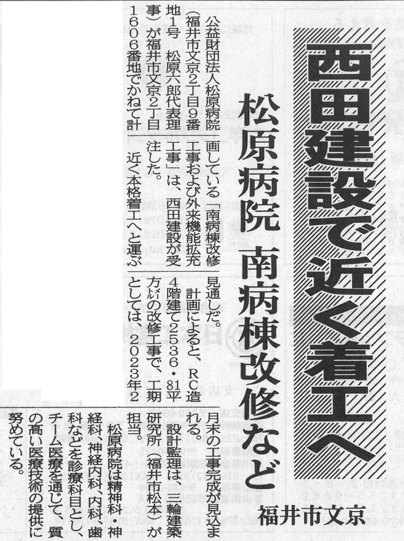 NEWS お知らせ TOP メディア掲載 南病棟改修工事(外来機能拡充工事)を受注しました。 南病棟改修工事(外来機能拡充工事)を受注しました。 2022.11.09 戻る 一覧へ 次へ 新着情報 永平寺大燈籠流しの清掃に参加しました。 丸岡宿泊型自立訓練事業所新築工事を受注しました。 小松(7)宿舎改修建築その1 を受注しました。 福井警察署 森田交番新築工事を受注しました。 公益財団法人 全国法人会総連合様から表彰されました カテゴリ インターンシップ 採用情報 現場見学会 メディア掲載 講演活動 令和7年度 令和6年度 令和5年度 令和4年度 令和3年度 令和2年度 令和元年度 平成30年度 平成29年度 平成28年度 平成27年度 平成26年度 平成25年度 平成24年度 平成23年度 アーカイブ 2025 (10) 2024 (30) 2023 (24) 2022 (21) 2021 (24) 2020 (30) 2019 (58) 2018 (57) 2017 (39) 2016 (34) 2015 (22) 2014 (14) 2013 (14) 2012 (11) 2011 (7) 新着情報 永平寺大燈籠流しの清掃に参加しました。 丸岡宿泊型自立訓練事業所新築工事を受注しました。 小松(7)宿舎改修建築その1 を受注しました。 福井警察署 森田交番新築工事を受注しました。 公益財団法人 全国法人会総連合様から表彰されました カテゴリ インターンシップ 採用情報 現場見学会 メディア掲載 講演活動 令和7年度 令和6年度 令和5年度 令和4年度 令和3年度 令和2年度 令和元年度 平成30年度 平成29年度 平成28年度 平成27年度 平成26年度 平成25年度 平成24年度 平成23年度 アーカイブ 2025 (10) 2024 (30) 2023 (24) 2022 (21) 2021 (24) 2020 (30) 2019 (58) 2018 (57) 2017 (39) 2016 (34) 2015 (22) 2014 (14) 2013 (14) 2012 (11) 2011 (7)