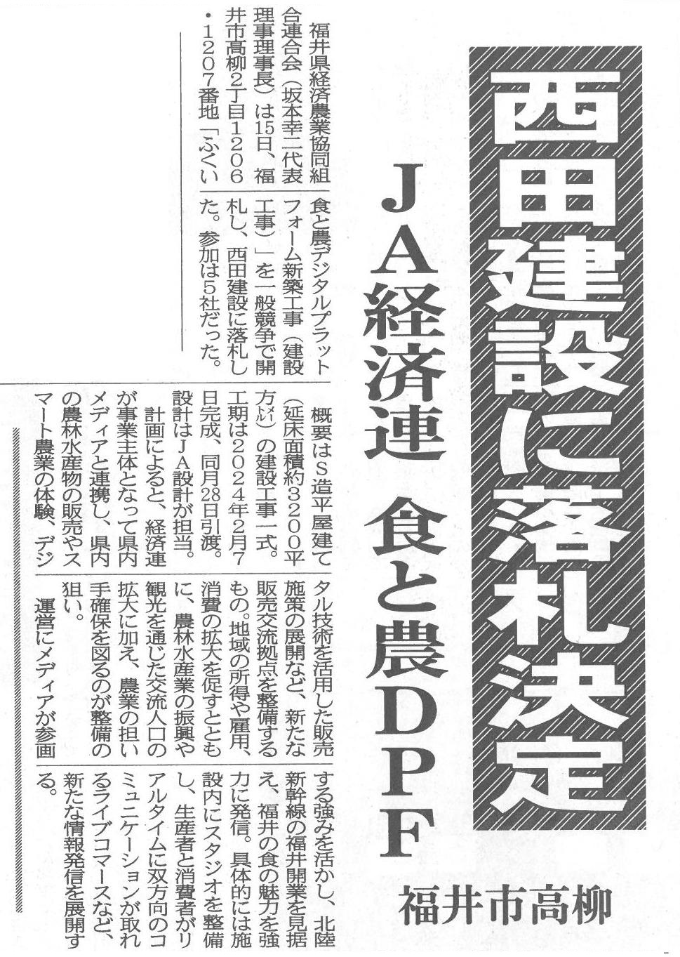 • ふくい食と農デジタルプラットフォーム新築工事を受注しました