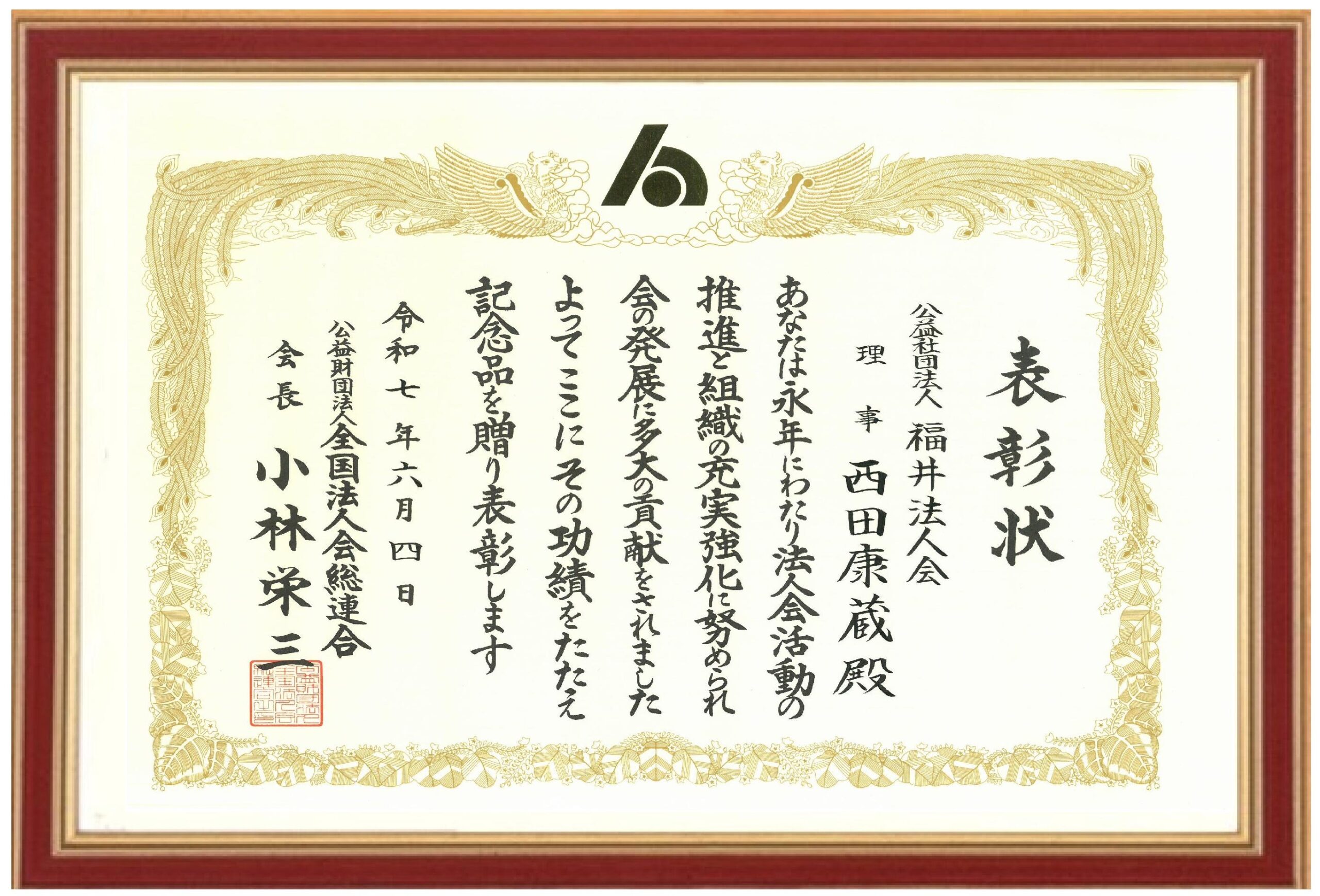 • 公益財団法人 全国法人会総連合様から表彰されました