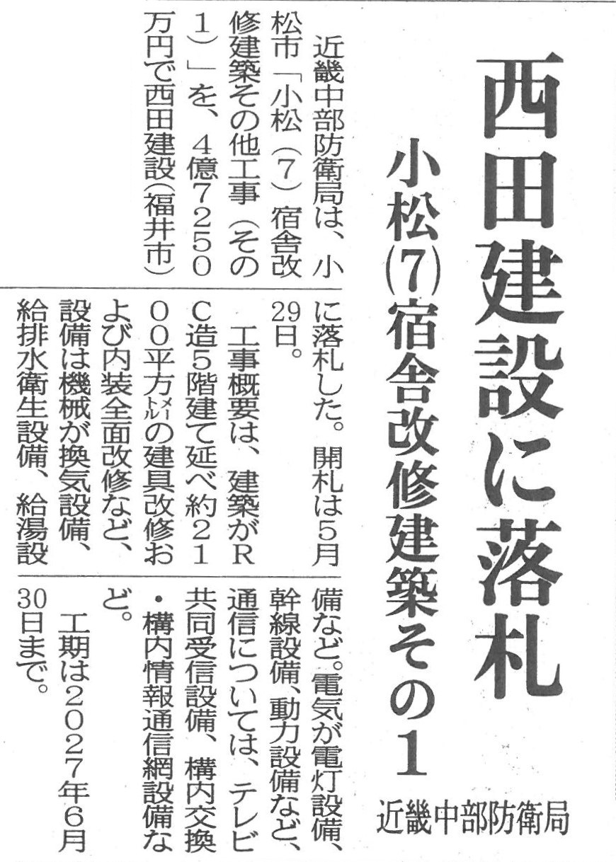 NEWS お知らせ TOP 令和7年度 小松(7)宿舎改修建築その1 を受注しました。 小松(7)宿舎改修建築その1 を受注しました。 2025.07.22 戻る 一覧へ 次へ 新着情報 永平寺大燈籠流しの清掃に参加しました。 丸岡宿泊型自立訓練事業所新築工事を受注しました。 小松(7)宿舎改修建築その1 を受注しました。 福井警察署 森田交番新築工事を受注しました。 公益財団法人 全国法人会総連合様から表彰されました カテゴリ インターンシップ 採用情報 現場見学会 メディア掲載 講演活動 令和7年度 令和6年度 令和5年度 令和4年度 令和3年度 令和2年度 令和元年度 平成30年度 平成29年度 平成28年度 平成27年度 平成26年度 平成25年度 平成24年度 平成23年度 アーカイブ 2025 (10) 2024 (30) 2023 (24) 2022 (21) 2021 (24) 2020 (30) 2019 (58) 2018 (57) 2017 (39) 2016 (34) 2015 (22) 2014 (14) 2013 (14) 2012 (11) 2011 (7) 新着情報 永平寺大燈籠流しの清掃に参加しました。 丸岡宿泊型自立訓練事業所新築工事を受注しました。 小松(7)宿舎改修建築その1 を受注しました。 福井警察署 森田交番新築工事を受注しました。 公益財団法人 全国法人会総連合様から表彰されました カテゴリ インターンシップ 採用情報 現場見学会 メディア掲載 講演活動 令和7年度 令和6年度 令和5年度 令和4年度 令和3年度 令和2年度 令和元年度 平成30年度 平成29年度 平成28年度 平成27年度 平成26年度 平成25年度 平成24年度 平成23年度 アーカイブ 2025 (10) 2024 (30) 2023 (24) 2022 (21) 2021 (24) 2020 (30) 2019 (58) 2018 (57) 2017 (39) 2016 (34) 2015 (22) 2014 (14) 2013 (14) 2012 (11) 2011 (7)